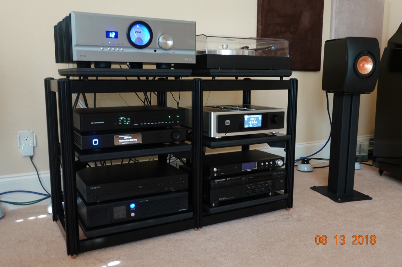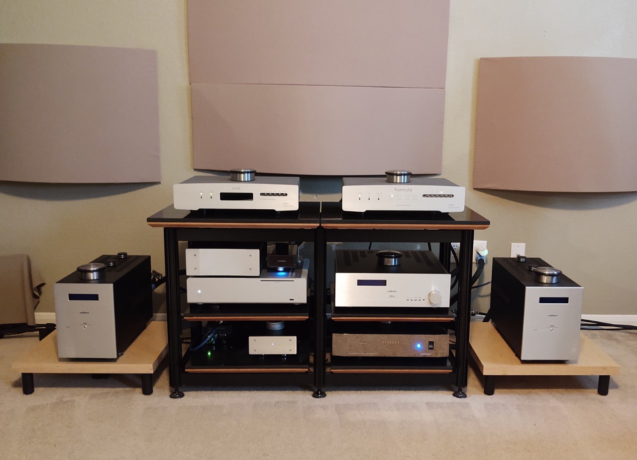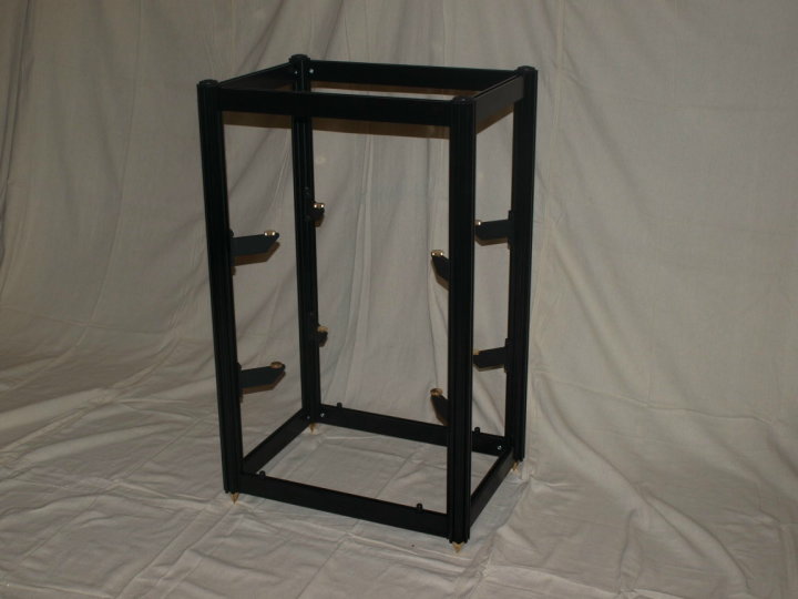 These heavy duty, 2 inch diameter octagonal columns weigh in at nearly a pound per linear foot. Aluminum is a good choice for audio rack columns since it transmits vibration energy quite well down it's longitudinal axis, where it is easily drained into your floor.